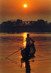 Sông sâu gợn sóng, nắng bừng hồng lên