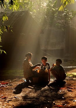 Mẹ ru con ngủ bóng làng liêu xiêu