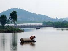 Mặt hồ gợn sóng vỗ ru mạn thuyền.