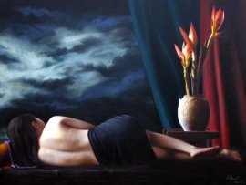 Một buổi chiều mùa thu, nắng đã chia nửa bãi, tơ nhện đã giăng mau. Cảm đoán là chiều thu bởi chỉ có chiều thu mới đẹp, buồn và diễn ra mau lẹ đến thế. Làng quê ven sông, trong ngôi nhà nhỏ giữa mảnh vườn hoang sơ mọc đầy những lùm cây trinh nữ, một đôi trai gái đang được yêu nhau, được ngủ bên nhau và được mộng mơ trong lời ru nhẹ nhàng, êm ái của tiếng thuỳ dương mấy bờ.