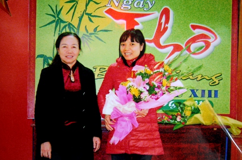 Nhà giáo: Vũ Thị Hồng Hạnh chụp ảnh với Nhà giáo: Phạm Thị Hồng Thắng