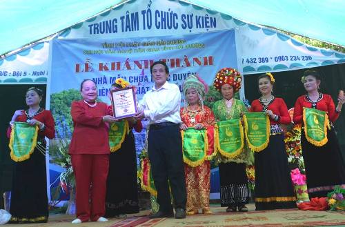 Phóng viên- BTV Truyền hình TVC Việt Nam lên trao bằng vinh danh cho bà Hoàng Thị Tâm.