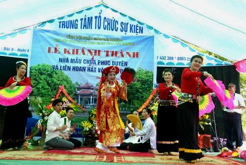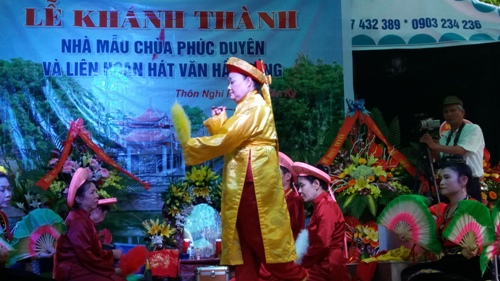 Đến dự lễ có ông Đỗ Văn Uyển Chánh văn phòng Ban tuyên giáo Tỉnh ủy Hải Dương. Ông Tăng Bá Hoành Nguyên Giám đốc Bảo tàng Hải Dương, Chủ tịch Chi hội văn nghệ dân gian Hải Dương tặng hoa chúc mừng. Các đồng chí đạị diện Đảng ủy, UBND, các đoàn thể của xã Tân Kỳ, Đại diện Hội phật giáo huyện Tứ Kỳ, các đoàn hát văn Hầu đồng của các tỉnh thành Hà Nội, Hải Dương, Hải Phòng, Thái Bình...và các huyện trong tỉnh về tham dự và biểu diễn tại lễ hội. Sau lễ cắt băng khánh thành nhà mẫu Chùa Phúc Duyên là chương trình biểu diễn của các đoàn hát văn hầu đồng tham dự lễ hội.