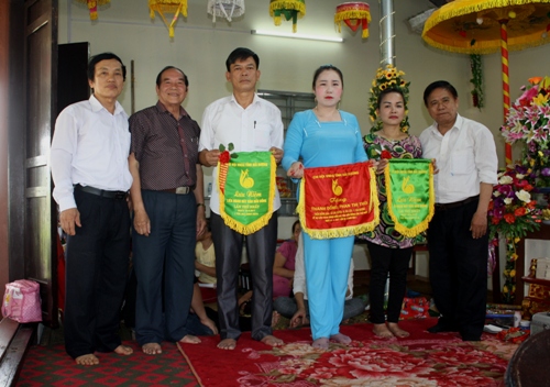 (phải) Chi Hội Văn nghệ dân gian Hải Dương đến dự và trao cờ lưu niệm