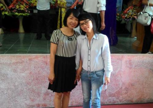 Tác giả thơ Lục bát trẻ Đàm Quyên Bắc Ninh (trái) và Mạc Tường Vy Thái Bình dự lễ.