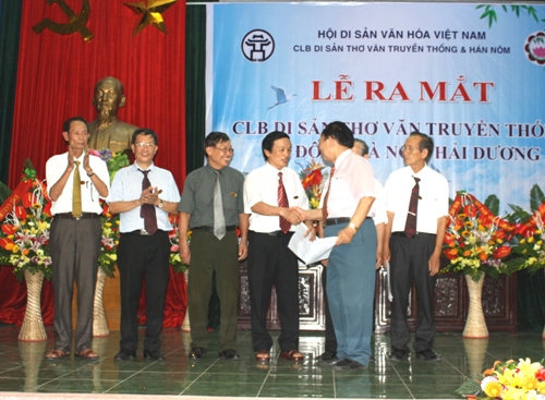 Ngày 25-6-2017 CLB Di sản thơ văn truyền thống Xứ Đông Hà Nội-Hải Dương nhận quyết định thành lập của CLB Di sản Thơ văn truyền thống &Hán Nôm Việt Nam đã tổ chức lễ ra mắt. Tới dự gồm 32 đoàn đại diện cơ quan Đảng, Chính quyền, đoàn thể, các cơ quan quản lý văn hóa, PTTH, báo của tỉnh Hải Dương và huyện Gia Lộc. Các nhà tài trợ, các CLB thơ bạn trong và ngoài tỉnh, các thi huynh thi hữu người yêu thơ, các quý vị lần đầu tiên đến dự để đăng ký hội viên cũng có mặt để chứng kiến và chúc mừng CLB Di sản thơ văn truyền thống Xứ Đông Hà Nội-Hải Dương tổ chức buổi ra mắt.