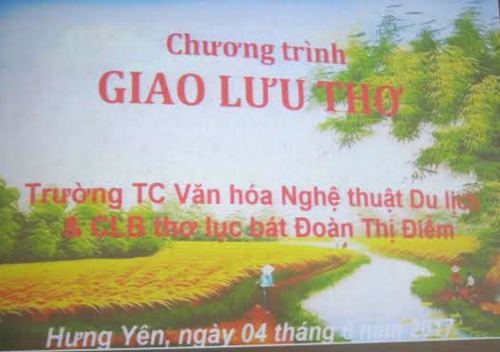 Hòa vào tiếng ve đang râm ran khắp đó đây trong dịp hè năm 2017. CLB LB Đoàn Thị Điểm( Hưng Yên) có buổi giao lưu thơ, ca với trương TC văn Hóa- Nghệ thuật & du lịch tỉnh Hưng Yên vào ngày 4 tháng 6 năm 2017 tại hội trường của trường Văn hóa- Nghệ thuật & du lịch tỉnh Hưng Yên.