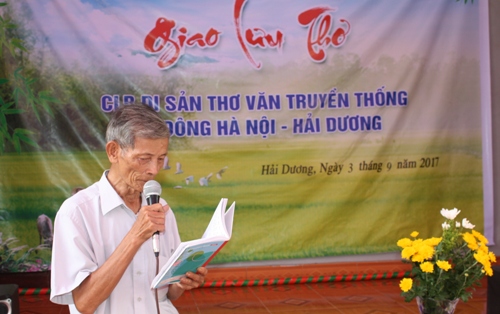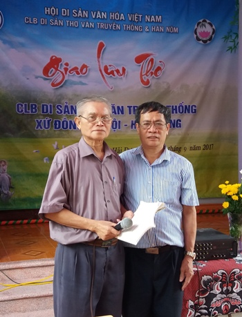 Nhà thơ Hồ Trọng Xán (trái) bình bài thơ "Mẹ" của tác giả Đỗ Trọng Kim