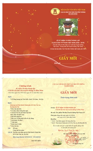 Thông báo giấy mời dự lễ kỷ niệm 10 năm thành lập CLB Di sản TVTT&HN (2008-2018)