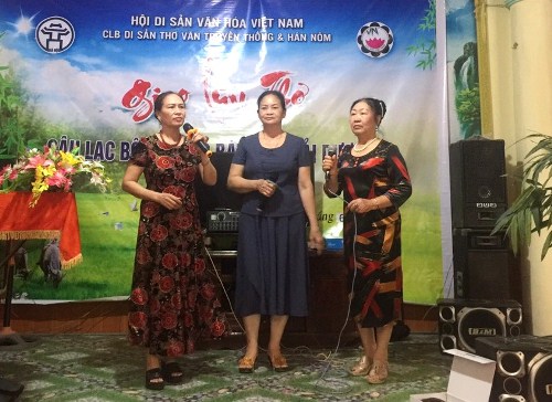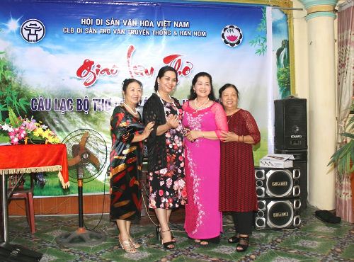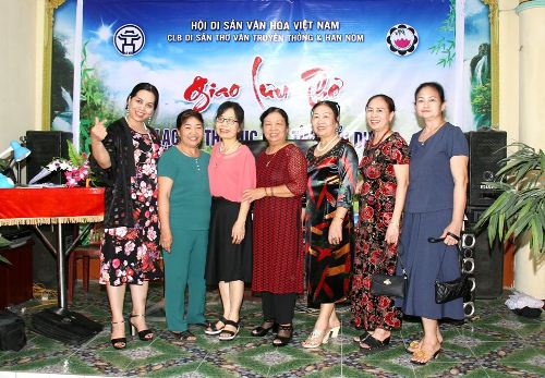 Hội viên nữ CLB sau nhiều tháng gặp lại nhau, tạo dáng trong ngày giao lưu thơ
