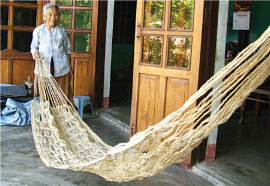 Người quê tôi chăm lắm, đi làm thì thôi, về đến nhà là lập tức ngồi vào se võng, vào nhà ai cũng thấy vài cái võng làm dở móc trên cột. Thường mỗi người làm một võng để các sợi võng, mắt võng được đều tay, võng mới đẹp. Chỉ khi làm quại võng, cổ võng mới nhờ những người khỏe tay làm giúp.